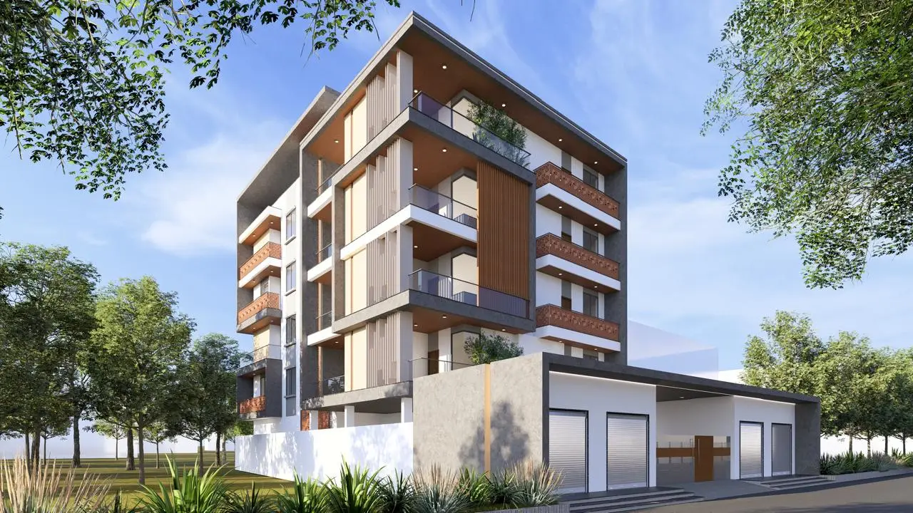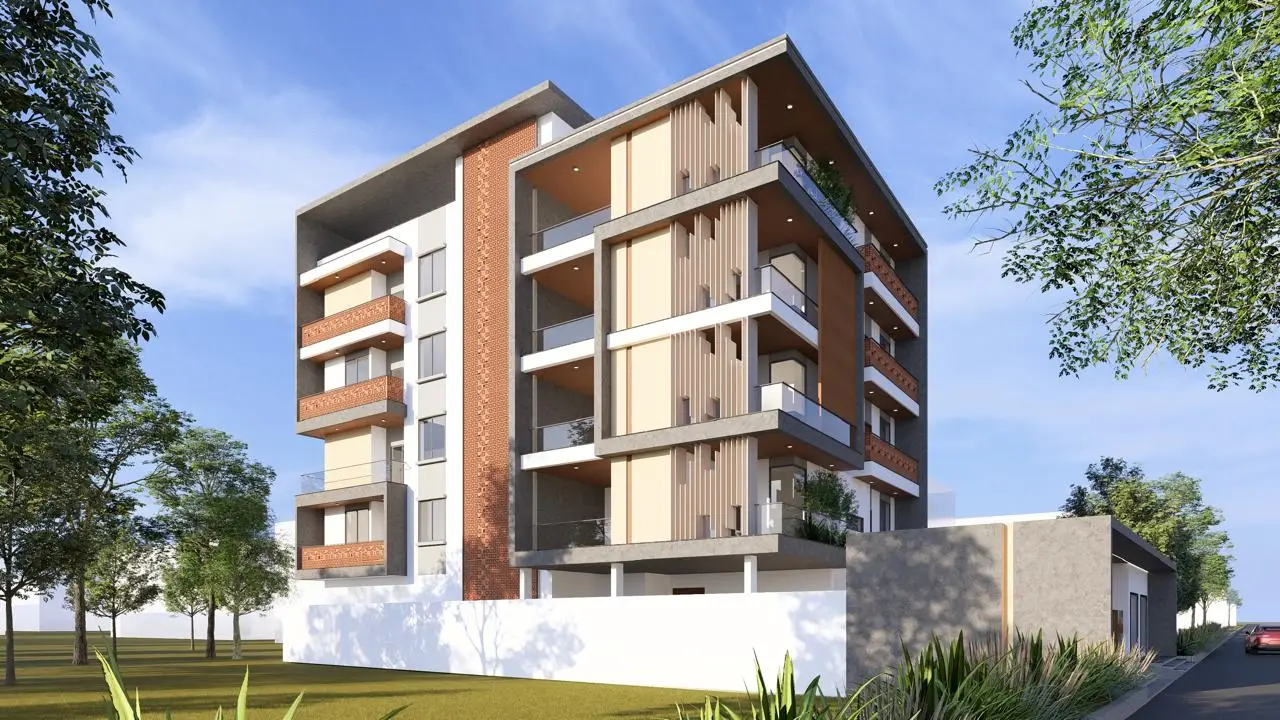 This five-storied residential building was designed with a strong focus on modern aesthetics and climate-responsiveness. The front elevation features a striking combination of clean architectural lines and terracotta cladding—bringing together contemporary design with timeless materiality.