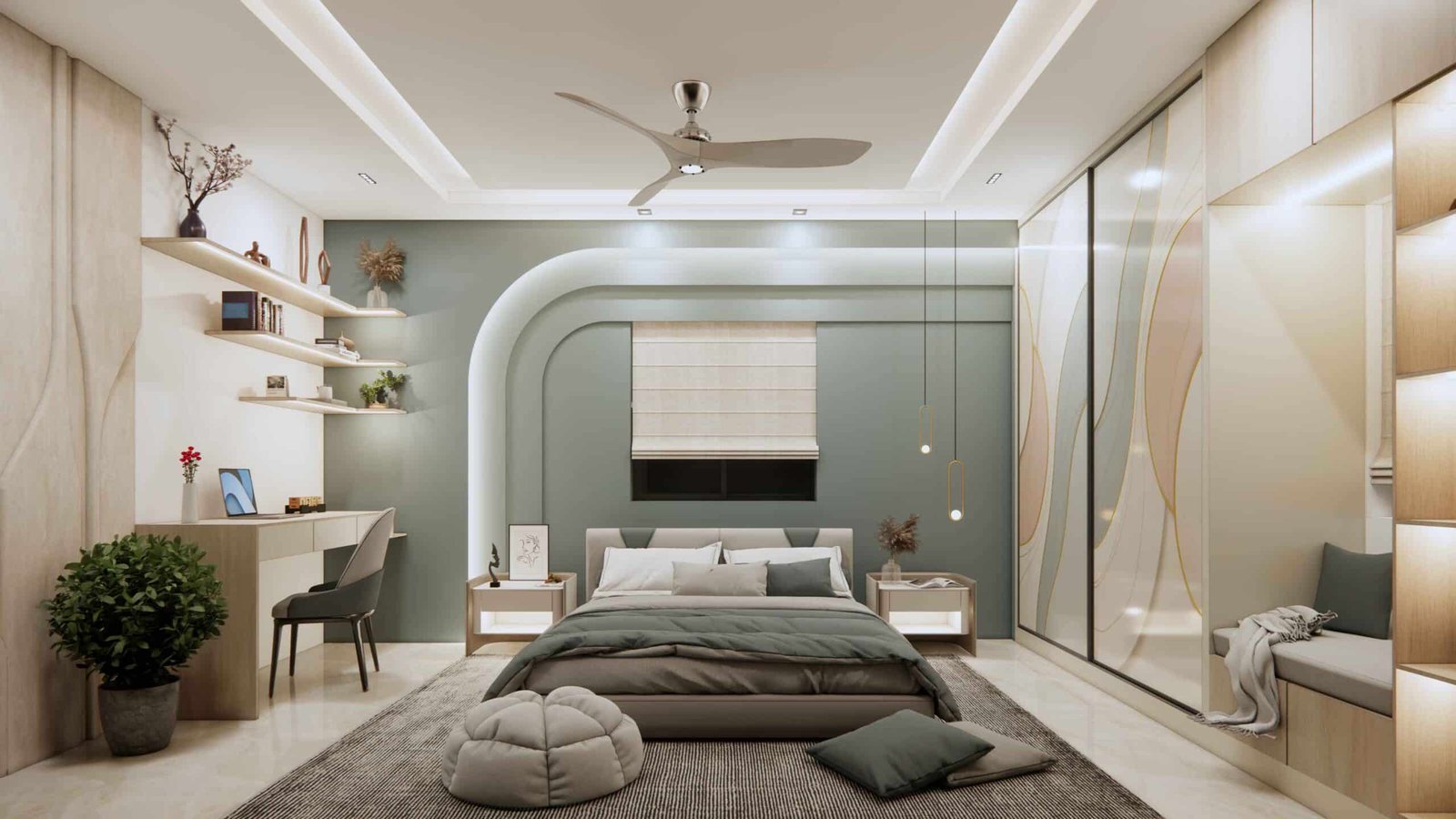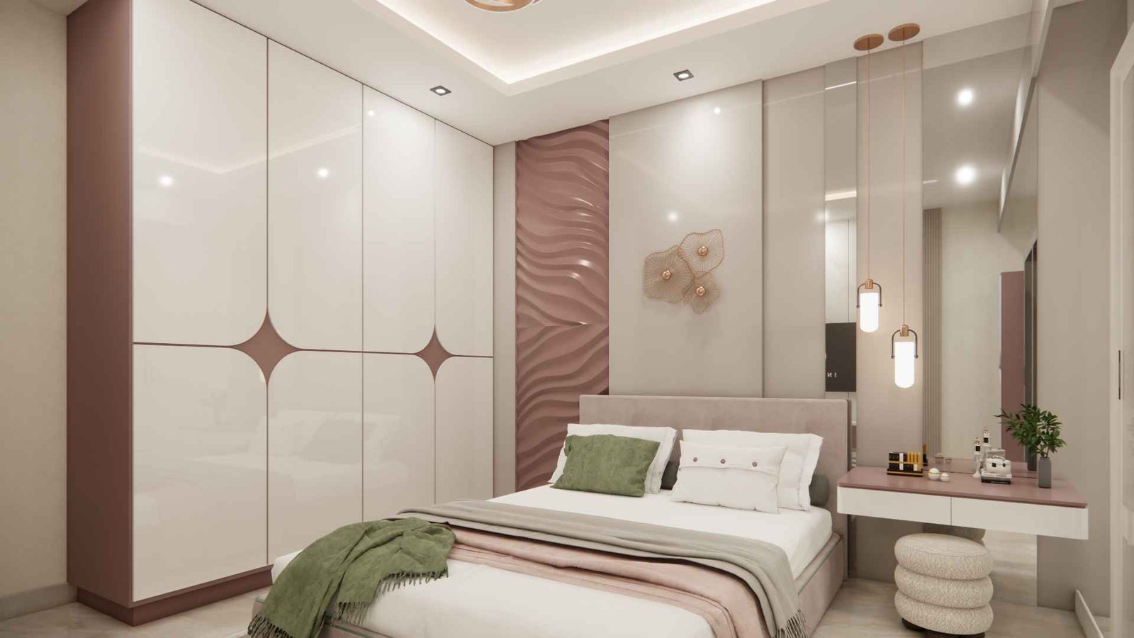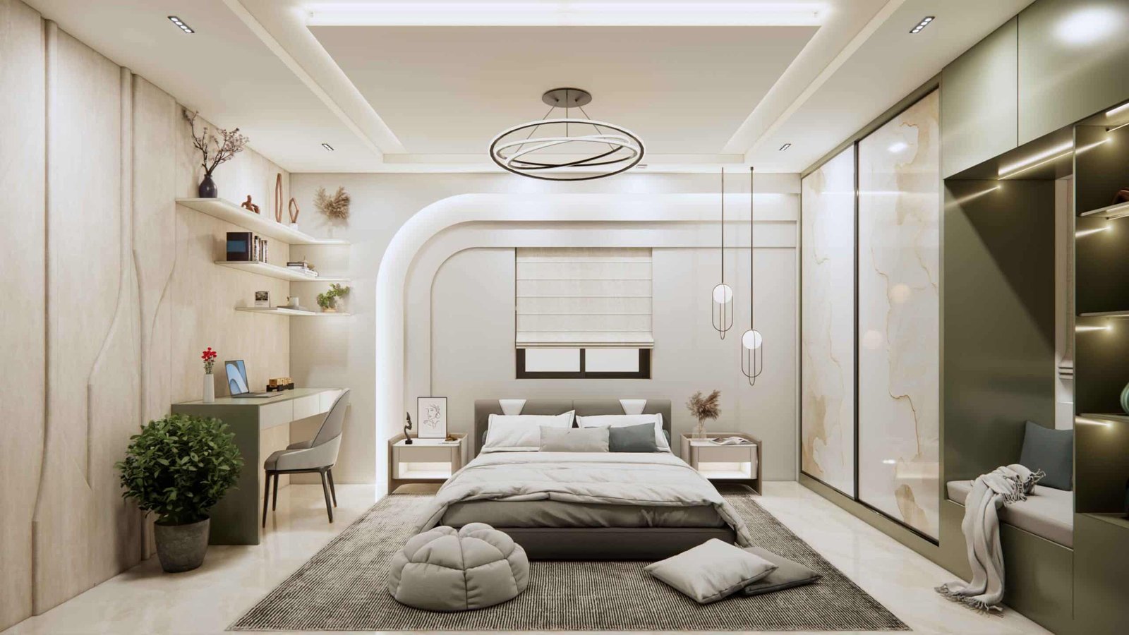 3D wall art and subtle lighting layers—including cove, spot, and natural light—enhance depth and ambiance. Artworks and decor reflect cultural and contemporary influences, creating a balanced, personalized space.