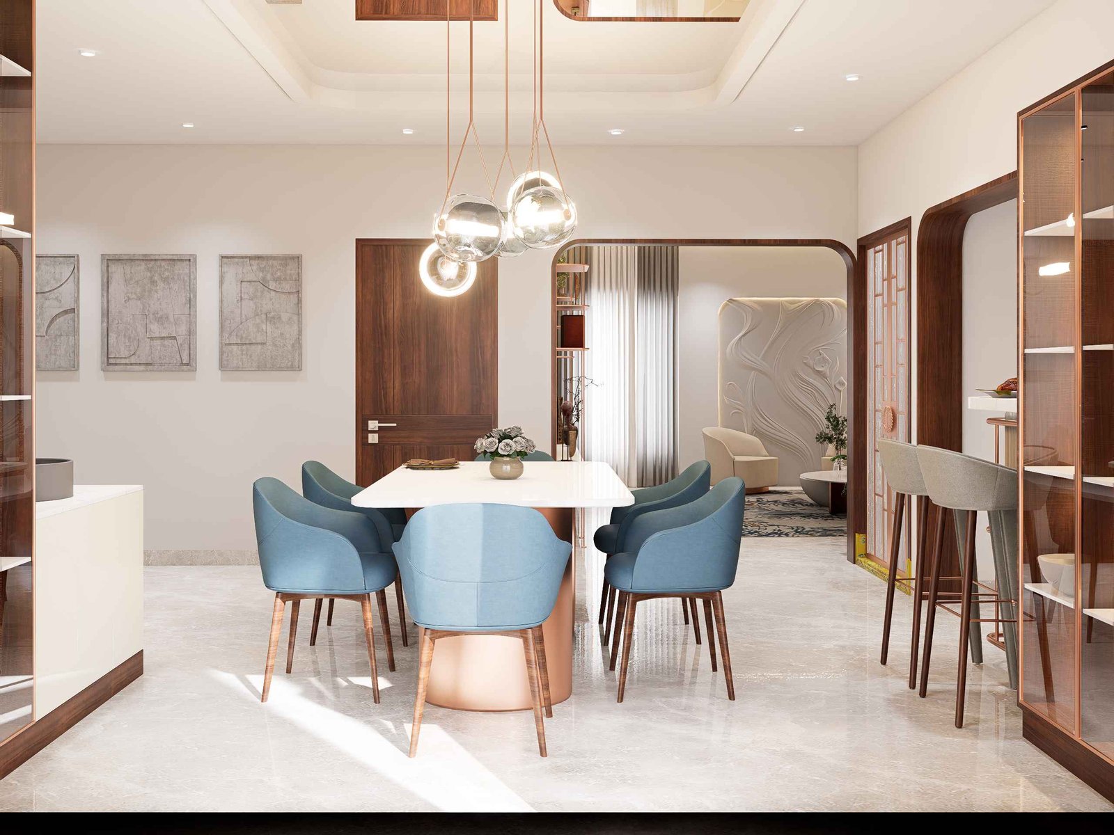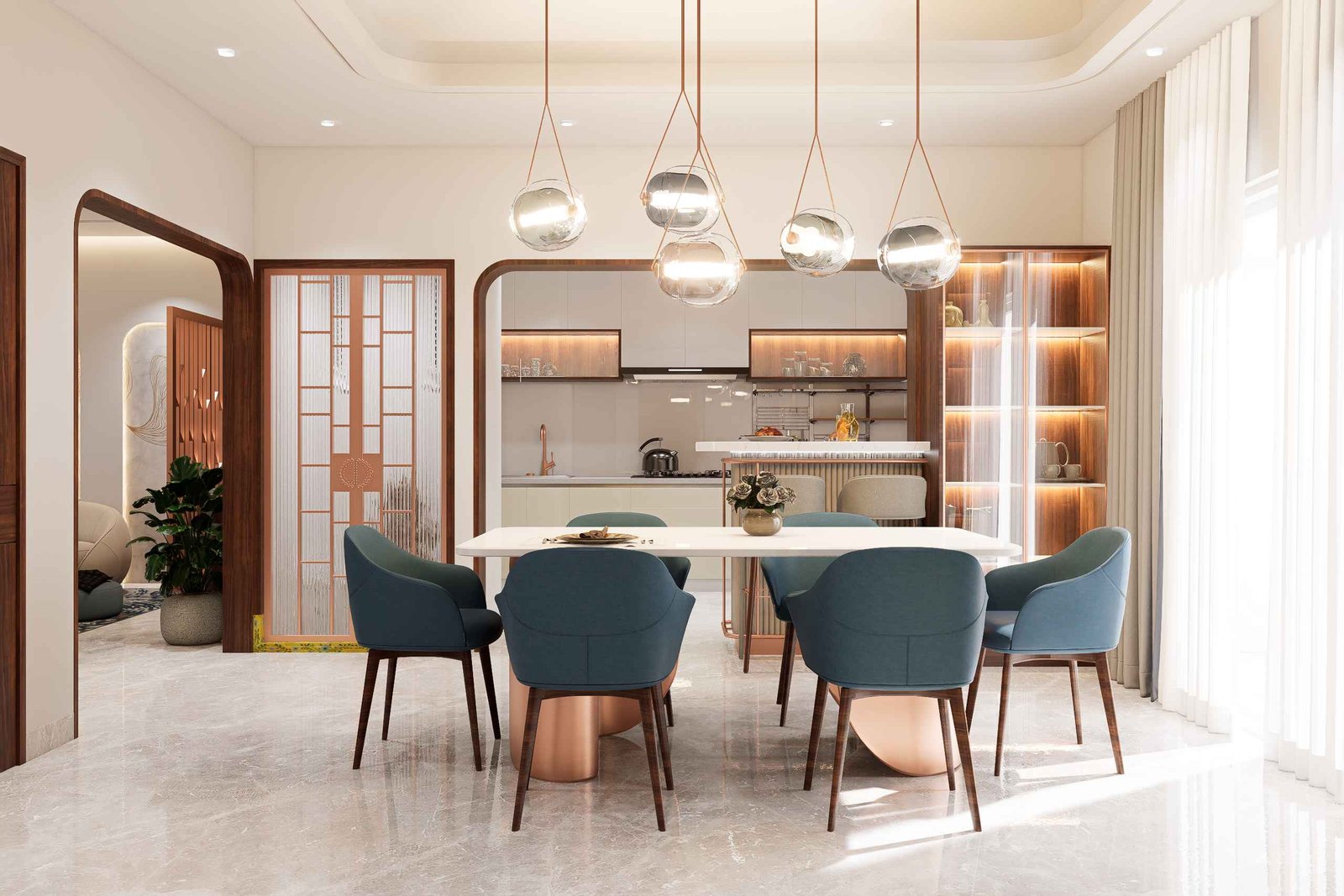 The look continues seamlessly into the dining area, ensuring a cohesive, elegant experience. This interior is designed for both comfort and sophistication, making it ideal for modern living.