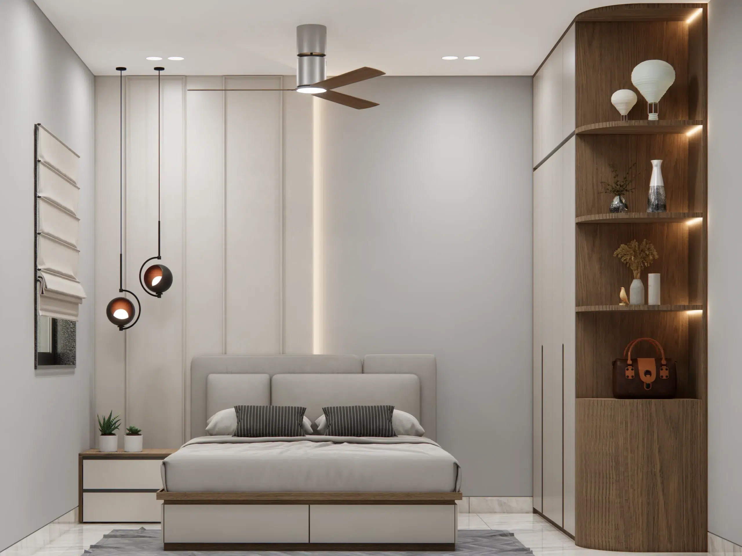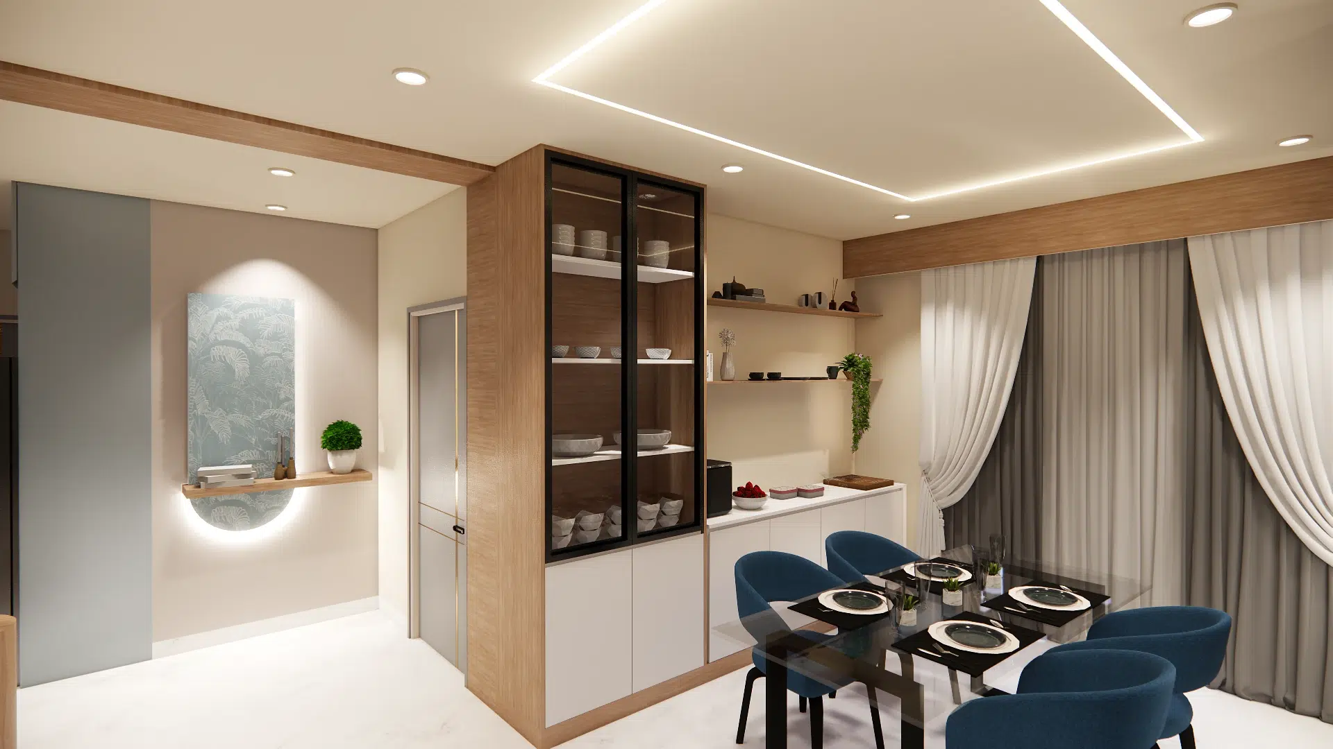 This 3BHK residence embodies cozy minimalism with a refined modern twist. Designed to maximize comfort and aesthetic appeal within a compact layout, the space features soft beige tones, warm wood accents, and a seamless blend of textures that create a tranquil yet contemporary living experience.